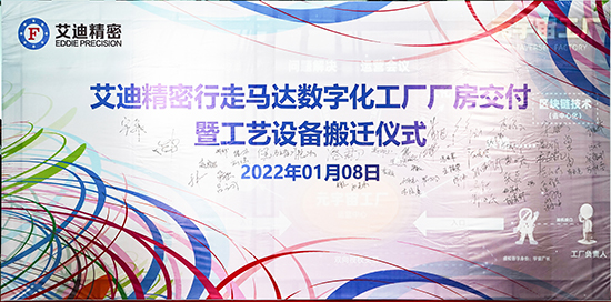 筑梦新起点,启航新征程。1月8日上午8点58分,艾迪精密行走马达数字化工厂厂房交付暨工艺设备搬迁仪式隆重开幕。艾迪精密董事长宋飞、艾迪精密副总经理冯晓华、艾迪液压总经理徐尚武、艾迪精密副总经理宋鹏等公司领导出席搬迁仪式并进行剪彩。