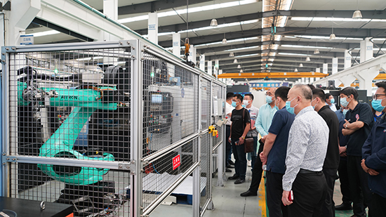 活动期间,与会人员实地观摩了艾迪精密马达工厂、艾迪智能制造产业园、工业机器人生产应用车间,艾迪精密董事长宋飞、艾迪艾创总经理李军峰、艾迪精密马达事业部总经理付晓东介绍了公司智能化改造和工业机器人研发应用情况。