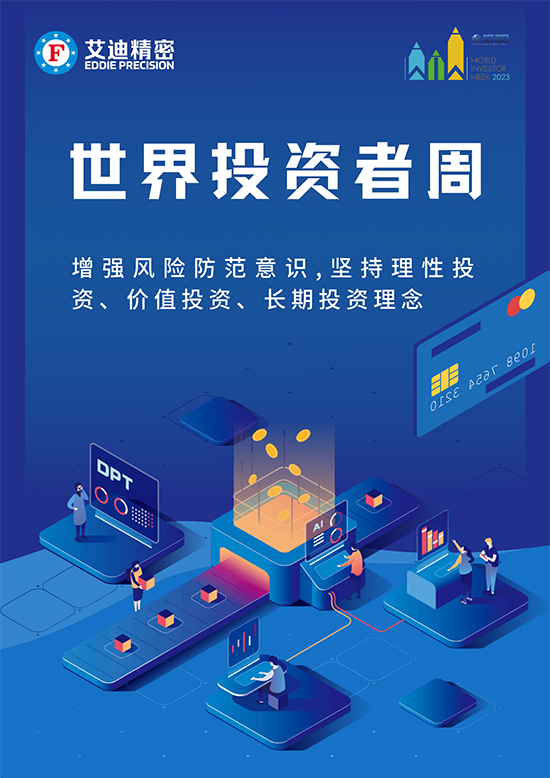 2023年10月23日至27日,中国证监会举办“2023年世界投资者周”活动,围绕“投资者风险应对能力”和“可持续金融”两大主题展开。在“世界投资者周”来临之际,艾迪精密提醒您:增强风险防范意识,坚持理性投资、价值投资、长期投资理念。