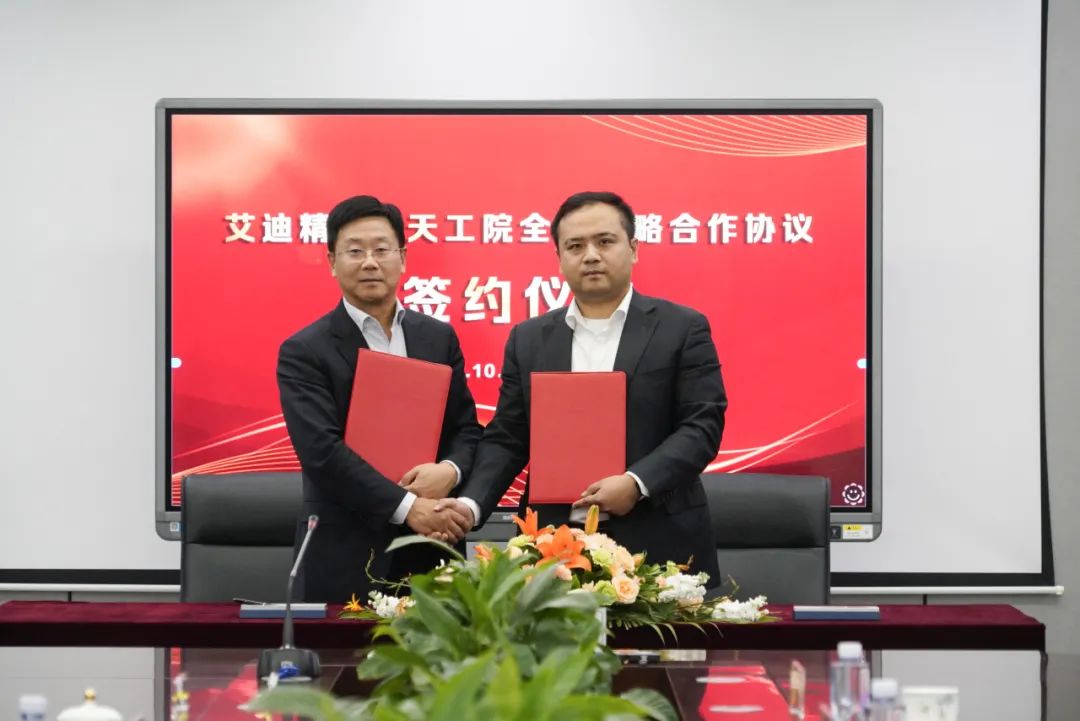艾迪精密董事长宋飞与天工院副总经理张宇飞签署《全面战略合作协议书》
