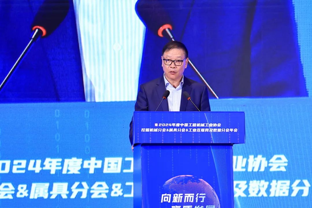 中国工程机械工业协会挖掘机械分会会长黄敏作《向新而行 高质发展》主旨发言