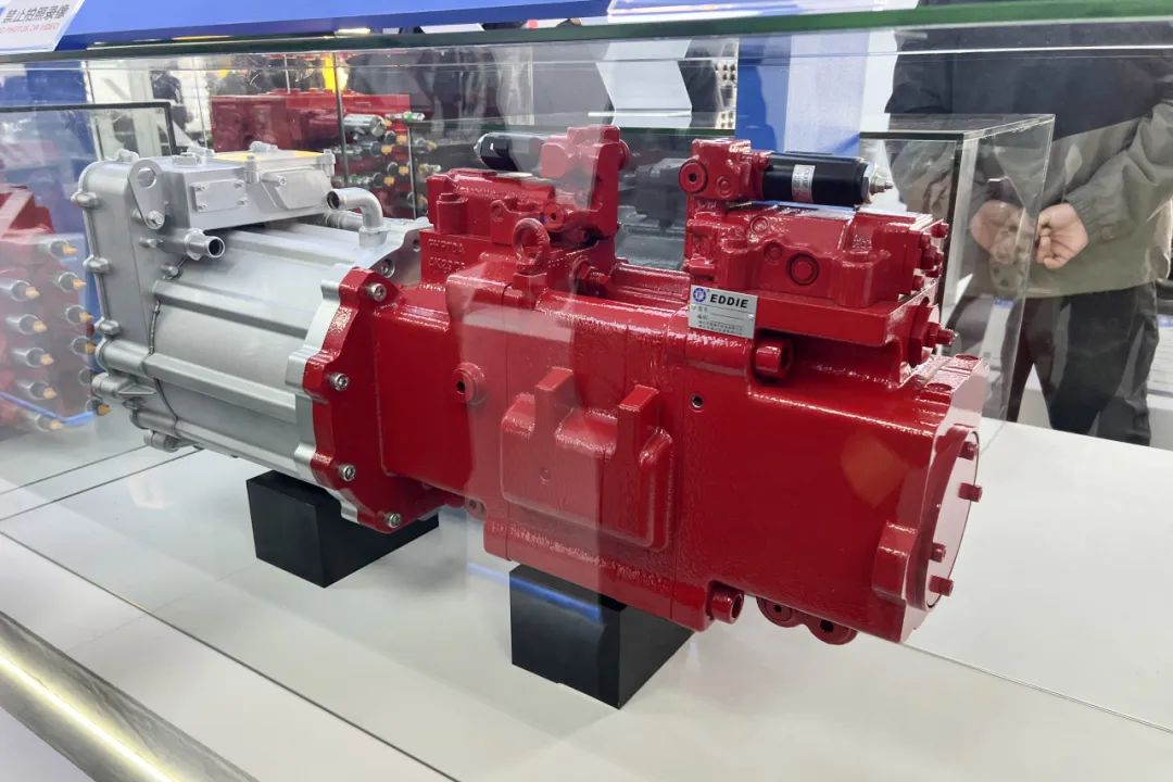 FHP70A高速泵适用于45吨以内的电动挖掘机。通过对柱塞泵动力学特性、吸排油特性、功率损失特性以及变量结构动态性能等方面的研究和改进,高转速柱塞泵工作转速可达6000rpm,最大排量为70cc/rev。搭配艾迪自主研发生产的扁线电机,结构更加紧凑,节省安装空间的同时,可有效降低运营成本。