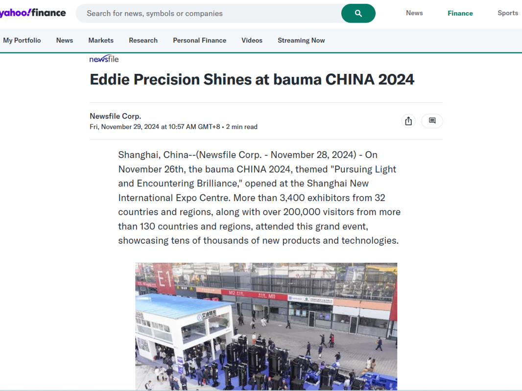 海外方面,艾迪精密获得yahoo!finance(雅虎财经)、加拿大主流媒体theglobeandmail(环球邮报)、streetinsider(华尔街内参)、marketwatch(道琼斯市场观察)、theeveningleader(美国先锋晚报)、The Times等主流媒体报道。